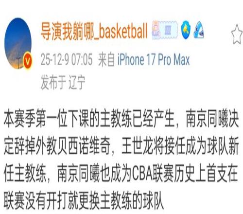 然而就在賽季開始之前,南京同曦的老總喊出了新賽季沖擊總冠軍的口號,接著在CBA俱樂部杯上,他們可以說是打的一塌糊涂,甚至輸給了寧波富邦和NBA的香港金牛,別說沖擊總冠軍,新賽季恐怕季后賽都困難,所以根據多位媒體人的消息,南京同曦已經調整了教練,貝西諾維奇成為新賽季第一位下課主帥,王世龍大概率接手。