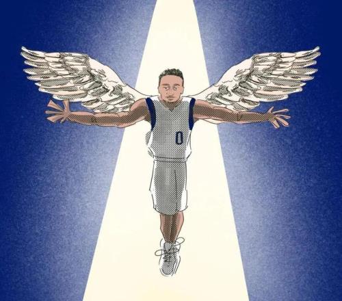 2014年選秀夜,19歲的??怂_姆,1米98的控衛骨架,2米06的驚人臂展,第一步啟動如閃電——球探們在他身上看到了“便士”哈達威的優雅。